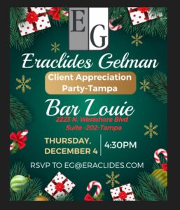 Join Eraclides Gelman for the Holiday Client Appreciation Party- Tampa
