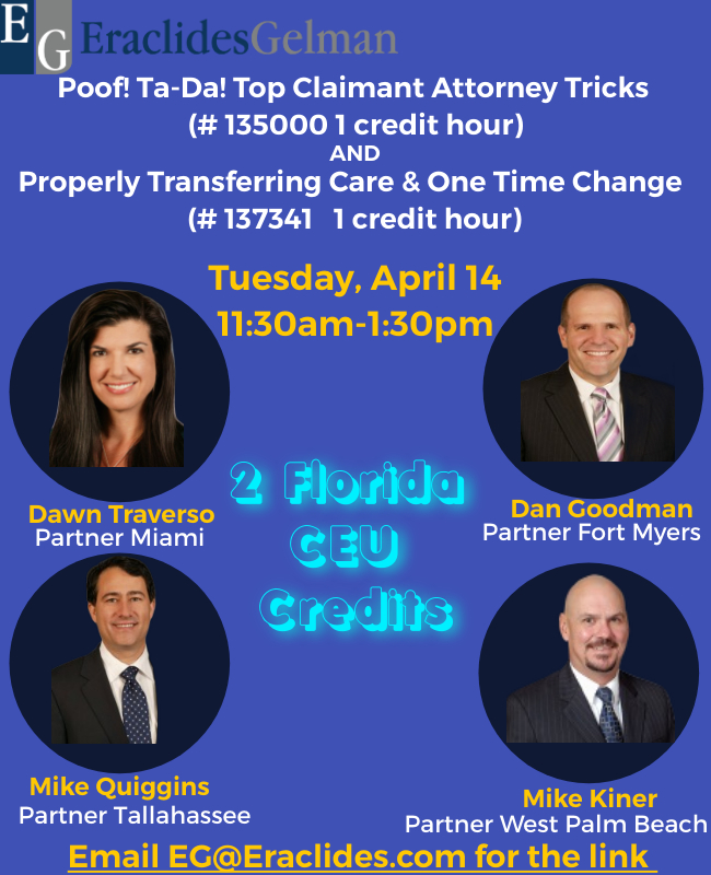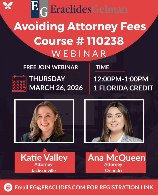 Join us at the Orlando office for food, refreshments and credits! Thursday, February 26 5:00pm 1551 Sandspur Road Suite 200 Maitland 32751 RSVP to EG@Eraclides.com