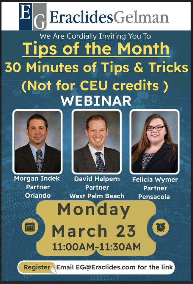 Monday, March 23 11:00am-11:30am Florida Tips of the Month